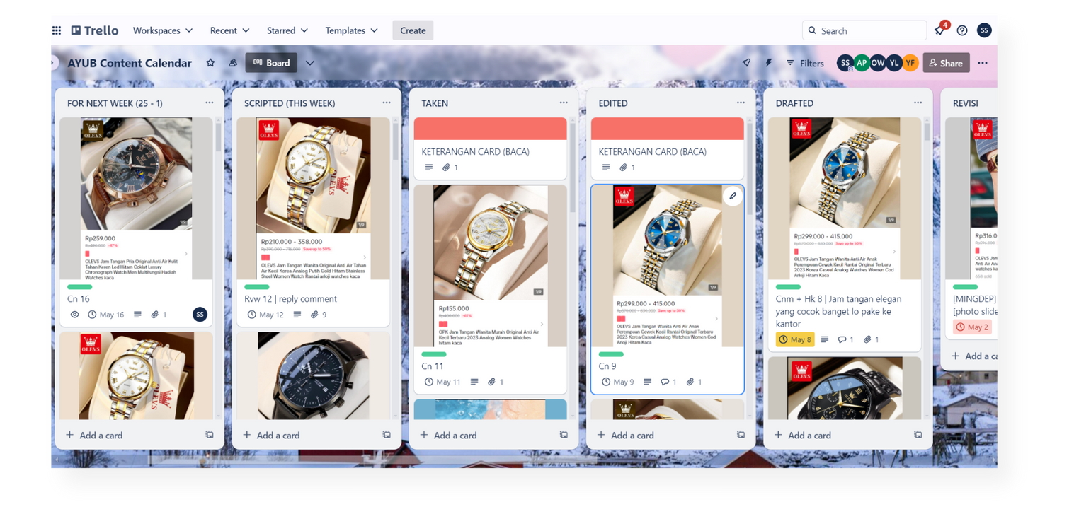 The content plan was made using Trello. Everyone in the team would have the access and would be able to move around the cards according to their progress.